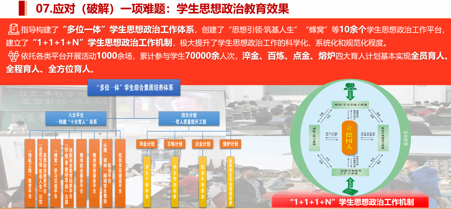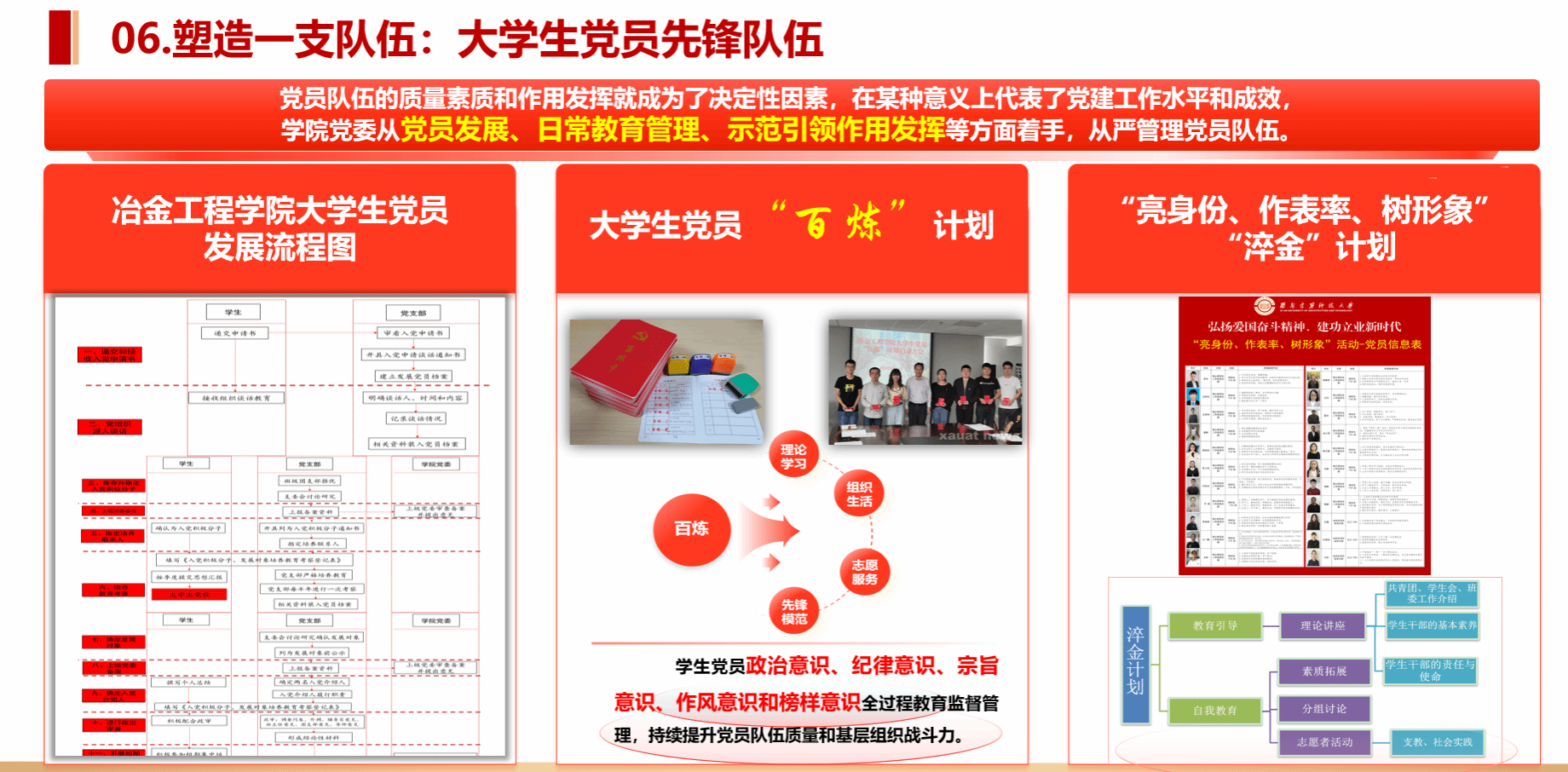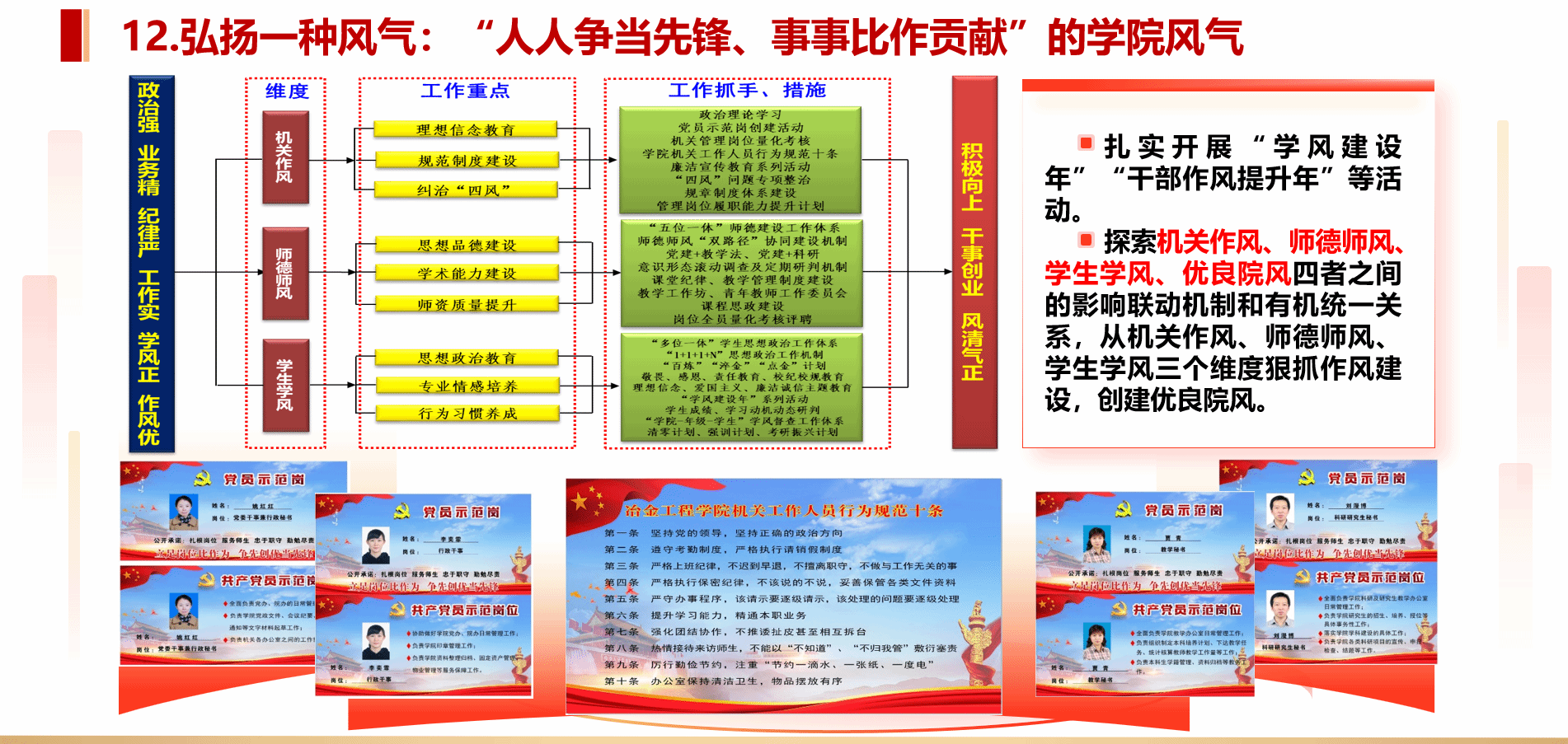 91网站 党委连续被评为“先进党委”,首批入选学校“党建工作示范91网站 ”,获批“全省党建工作标杆院系”,成为全校第一个党建、团建省级“双标杆”创建91网站 ,91网站 团委获“全国钢铁行业五四红旗团委(标兵)”。1个党支部入选“全国党建工作样板支部”,2个党支部入选“全省党建工作样板支部”,4个党支部入选校“党建工作样板支部”,获批“双带头人”教师党支部书记工作室2个。一流专业、一流课程、国家级人才、国家自然科学基金重点项目、国家重大科研仪器研制项目、国家重点研发计划项目都实现新突破。连续荣获“年度考核优秀91网站 ”,荣获“陕西省师德建设先进集体”荣誉称号。