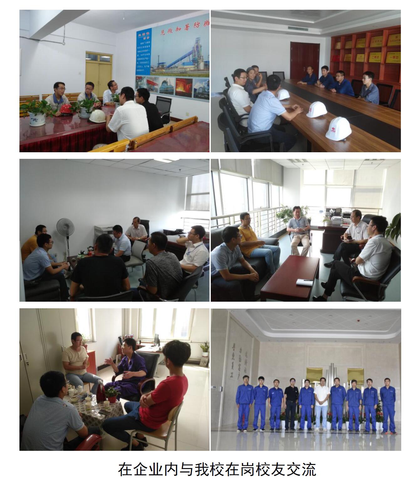 本次调研走访活动深入企业一线,了解现代化冶金企业和当代钢铁工人,考察企业生产工艺、工作环境、职工工作现场条件等情况;与人力资源部和校友开展座谈交流,了解企业发展情况,2019年企业招聘计划,毕业生在企业的发展情况,用人单位和校友对学校人才培养工作的意见和建议等。在企业相关负责人的陪同下,调研团参观了原料厂、炼铁厂、炼钢厂、轧钢厂、深加工车间、设计院等工作现场及员工生活区。现代冶金企业优美的工作生活环境、一流的生产设备以及强劲的市场表现为大家留下了深刻的印象。调研期间,两位老师还拜访了部分校友,与校友们进行交流座谈,了解校友的成长经历和工作感受,并向校友们转达学校、学院的问候和祝福,鼓励大家勤奋工作、拼搏进取,在工作中积累经验,在企业中作贡献,为母校争得更大的荣誉。