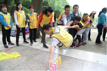 活动中,参训教师被分为三组,在教官的指导下积极主动地参加到小组队徽、队歌与口号的设计中,共同讨论、献言献策。在破冰、鼓舞飞扬、达芬奇密码等多个训练项目中,老师们直面困难,互相帮助,默契合作,顺利完成了全部项目。大家在一天拓展训练中,加深了对团队合作、团队建设、团队精神的理解。
