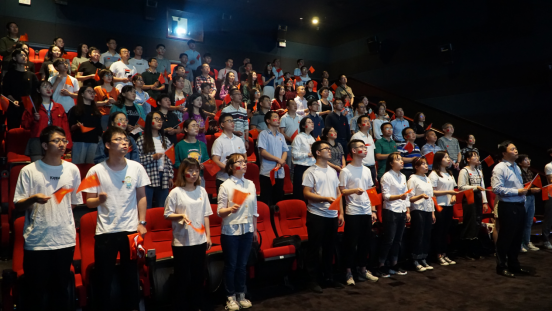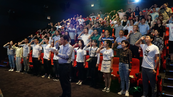 在观影活动之前,全体党员在学院党委书记马立建的带领下,重温了入党誓词。