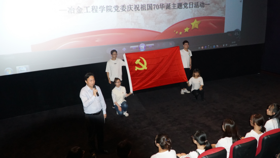 影片结束后,全体党员挥舞国旗共唱《我和我的祖国》,用歌声向祖国深情表白,祝福祖国繁荣昌盛。大家纷纷表示要守初心、担使命,立足岗位,矢志奋斗,为学校和学院的发展建设多做贡献的信心和决心。