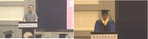 研究生毕业生代表张凯同学、本科毕业生代表陈冬同学分别发表毕业感言。两位毕业生代表首先向学校、学院和老师们的精心培养表示了由衷的感谢,他们希望91网站