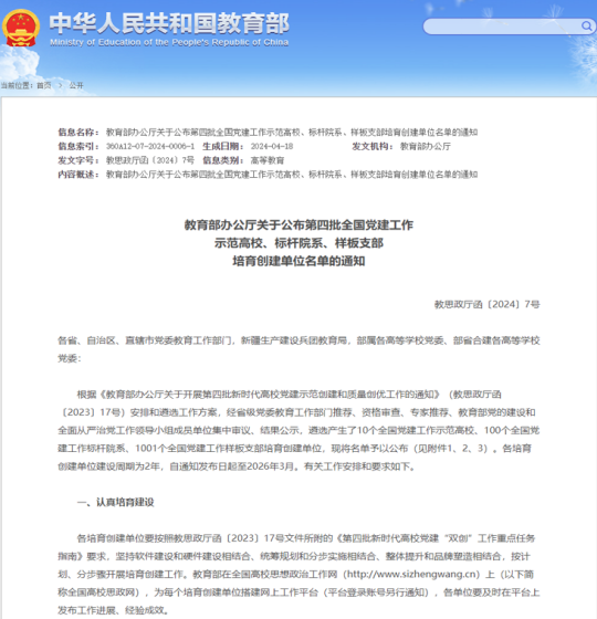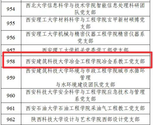 近日,教育部办公厅关于公布了第四批全国党建工作示范高校、标杆院系、样板支部培育创建单位。经省级党委教育工作部门推荐、资格审查、专家推荐、教育部党的建设和全面从严治党工作领导小组成员单位集中审议、结果公示,遴选产生了10个全国党建工作示范高校、100个全国党建工作标杆院系、1001个全国党建工作样板支部培育创建单位。我院冶金系教工党支部获批全国党建工作样板支部。