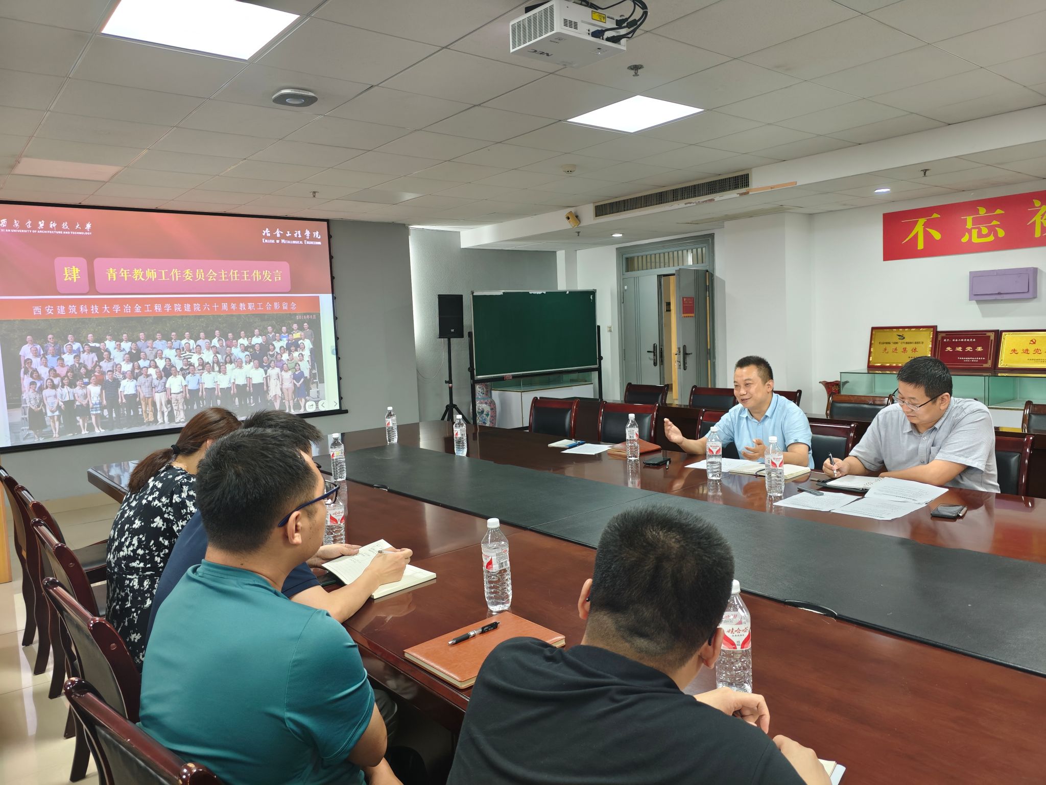 赵福才介绍了学院历史和师资变化,并一起学习了教育系统警示案例汇编材料,鼓励各位老师珍惜目前的教师身份,努力培养更多让党放心、爱国奉献、担当民族复兴重任的时代新人。