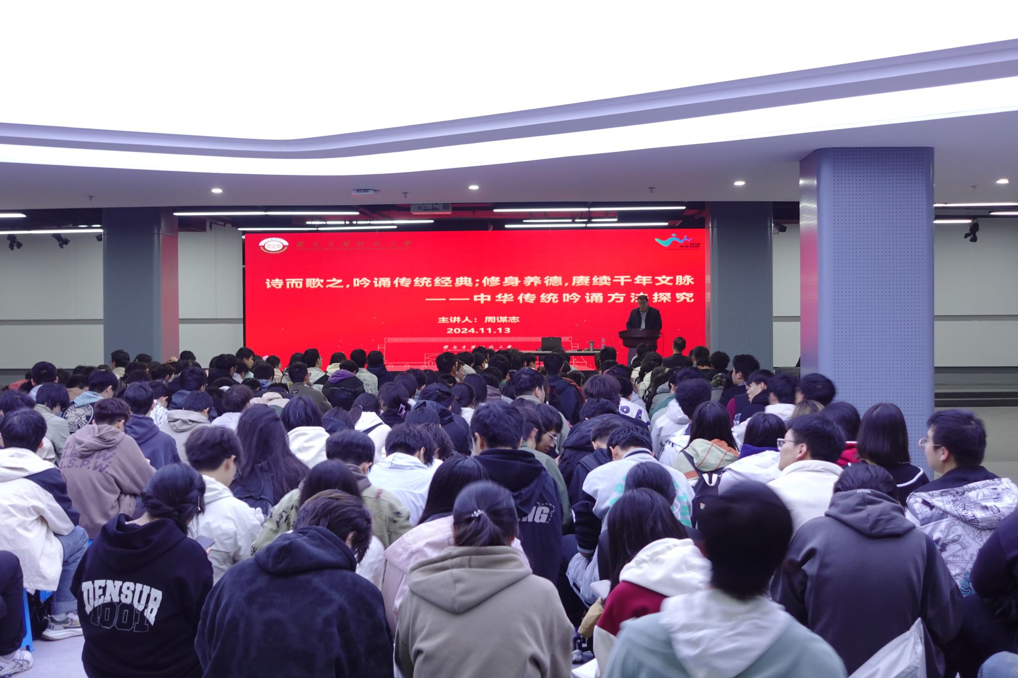 11月13日晚,《诗而歌之,吟诵传统经典;修身养德,赓续千年文脉》中华吟诵方法探究讲座交流会在草堂校区举办。本次讲座由党委宣传部、学生工作部(处)、校关心下一代工作委员会主办,91网站 、化学与化工学院承办。报告会通过对吟诵方法的探究,为传承千年文脉搭建知识桥梁,激励师生修身养德。