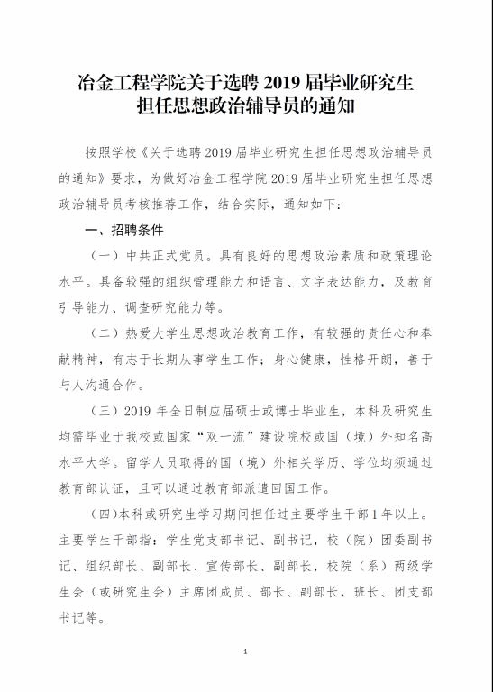 91网站 关于选聘2019届毕业研究生担任辅导员的通知