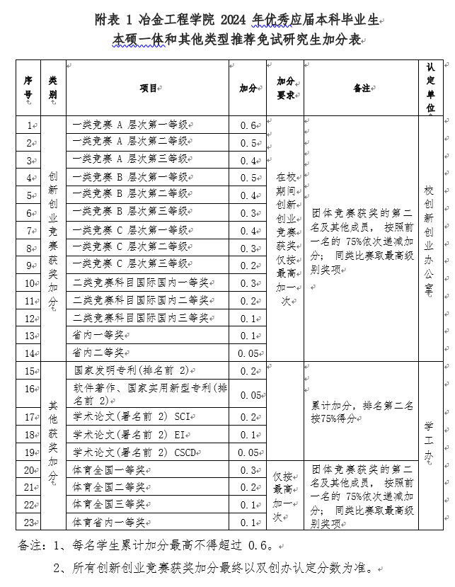 2024年优秀应届本科毕业生其他类型推荐免试研究生加分表》(附表1)。