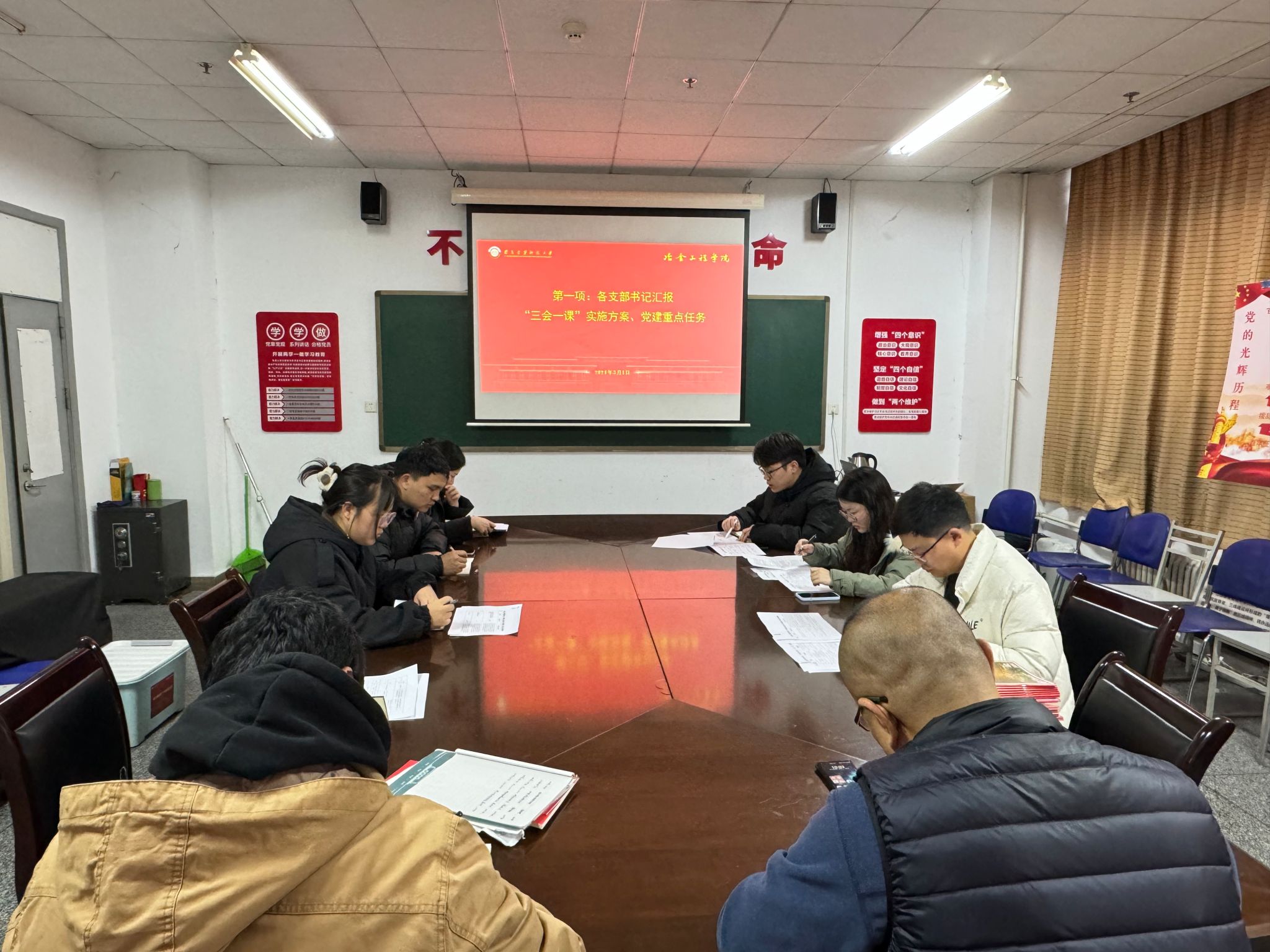 学院七名本科、研究生党支部书记结合“三会一课”工作安排和各支部本年度党建重点和特色工作汇报了2024年度支部工作方案。