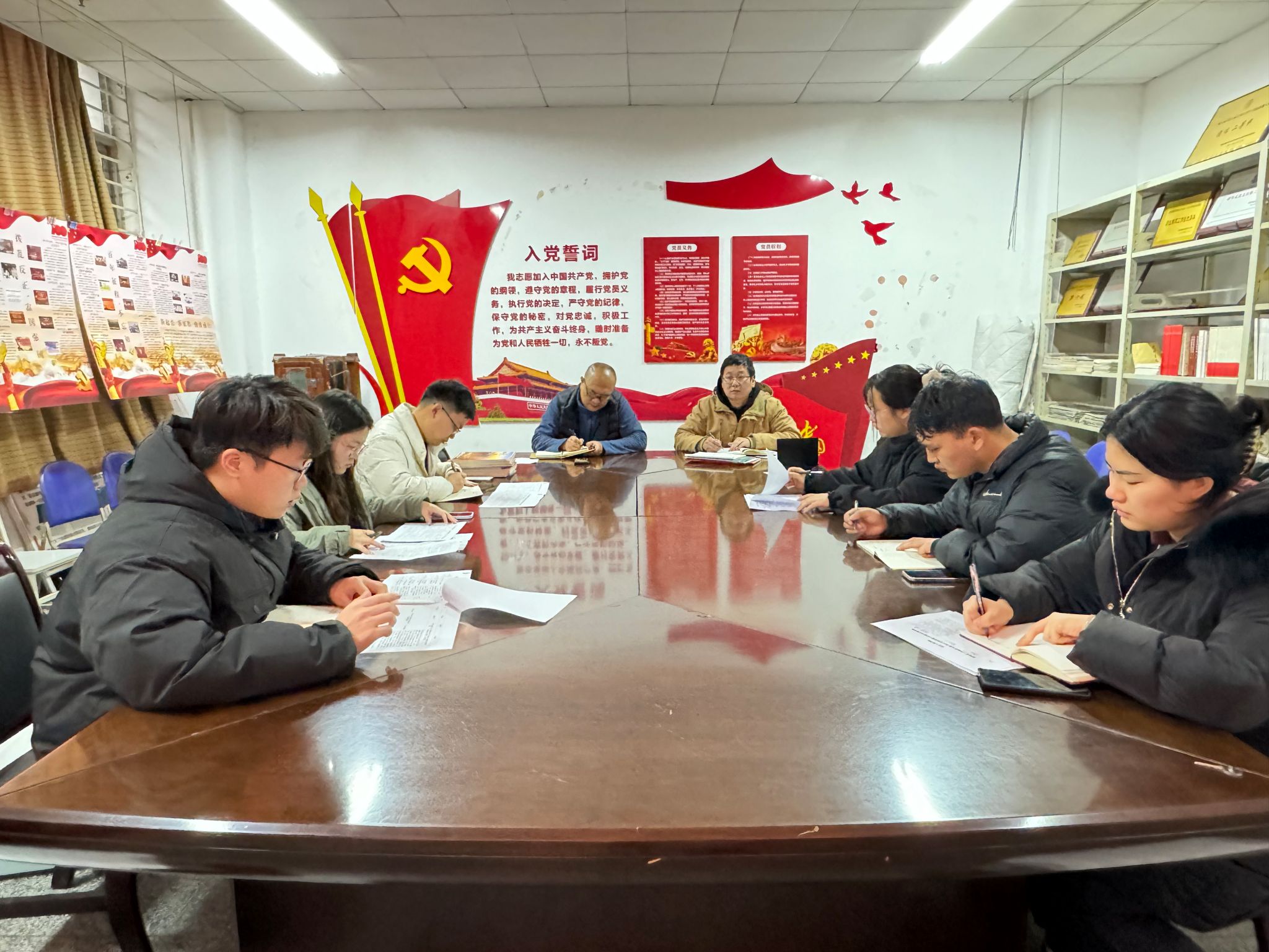 赵福才根据前期调研党员、积极分子情况安排本年度第一次党员发展任务。结合全省党建标杆院系验收要求,指导学生党支部做好规范建设工作。