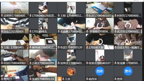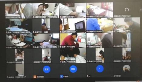 本着“一课一案”的原则,各课程根据工程认证专业指标点以及课程特色,制定详细的在线考核方案。学院鼓励教师采用多种方式,充分利用各种网络资源进行课程考核,优先推荐使用雨课堂、学习通、超星、微助教等多种平台,并要求统一采用腾讯会议进行云监考。学院安排巡考人员,对考场情况进行随机抓拍,实时监控。