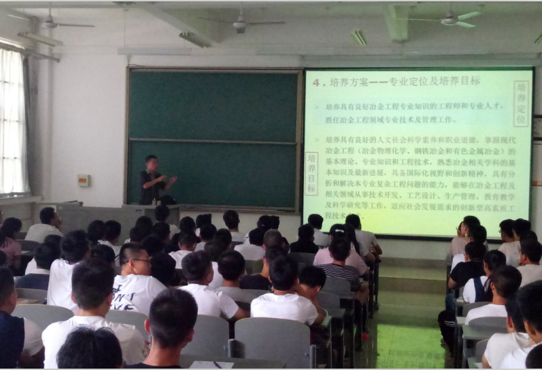 为帮助2017级新生尽快了解专业发展,完成个人学业的设计,9月6日,91网站 教学办组织了2017级新生的专业介绍活动,邀请化工教研室主任张秋利、材成教研室主任王强、金属教研室主任胡平、冶金教研室主任施瑞盟四位老师赴草堂校区,为同学们进行了精彩的宣讲。