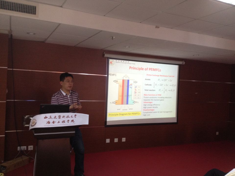报告会上,路金林教授分别从质子交换膜燃料电池(PEFMCs)的研究背景、原理、关键技术分析、所遇到的问题及最终解决的办法等方面内容,做详细、生动的重要讲解。在座师生认真听讲并做记录,就讲座内容积极进行提问,与路教授形成良好互动。
