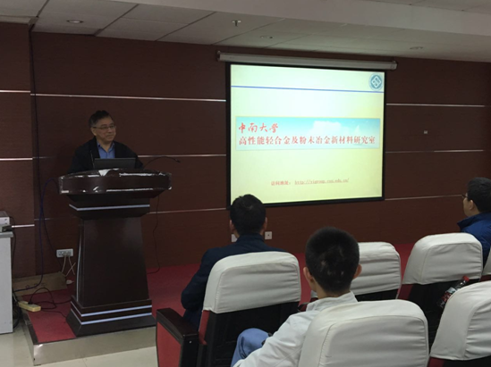 报告会期间,主讲人易教授就高性能轻合金及粉末冶金新材料给大家进行了相关学术汇报,从轻合金材料在加工、热处理过程中的组成演变及调控,金属材料中界面结构及性能的表征和第一性原理计算,金属材料在各种复杂环境中的服役行为和失效机理,三个方面进行了简单的阐述和讲解,开展了一次高质量、高层次的学术交流活动。易教授结合自己这几年对科研的感悟和教学经验与大家分享自己的心得,鼓励大家用心摸索,努力学习,并且欢迎大家去中南大学交流和学习。