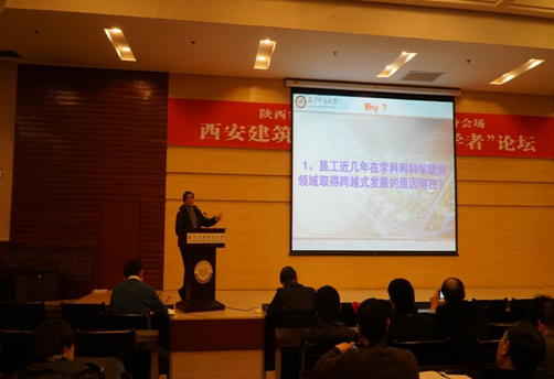 报告会上,王华教授阐述了学科建设的三大要务即要凝练学科方向、凝聚学科队伍、打造学科平台,指出了团队和平台建设是学科建设的重要内容,介绍了昆明理工大学在学科建设上一些优秀的发展理念。首先,着力打造昆工科技创新团队支撑体系,这主要包括校级科技创新团队的分类与管理和科技创新平台的建立。其次,着力打造昆工科技创新链支撑体系,这主要包括了知识创新体系、技术创新体系、科技成果转移转化孵化体系。最后,着力打造昆工科技发展的制度环境保障体系,主要包括发展理念、科技创新运行机制、科技创新管理体制。在报告中王华校长通过昆明理工大学近年的迅猛发展和王华校长所带领的科研团队取得的诸多成果,充分的论证了重点实验室、工程(技术)研究中心、工程实验室、大学科技院对于建设国际知名国内高水平大学和“双一流”大学的重要性。