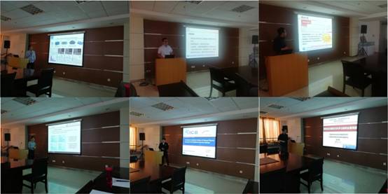 交流报告环节,中科院兰化所青促会小组成员黄新异、李湛、哈伟、张兴凯和张斌分别作了题目为“逆流色谱技术在天然产物分离中的应用研究”、“多孔石墨烯的制备及其在分离分析中的应用研究”、“多级自组装调控的药物级联控释研究”、“铜表面反置换沉积多功能贱金属薄膜”和“碳薄膜结构调控、界面行为与超滑”的报告。