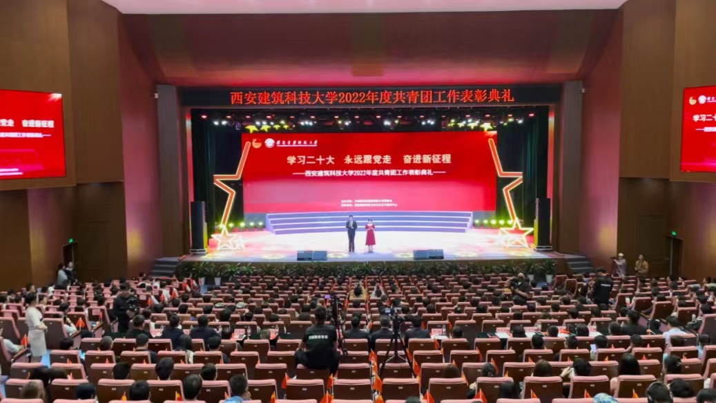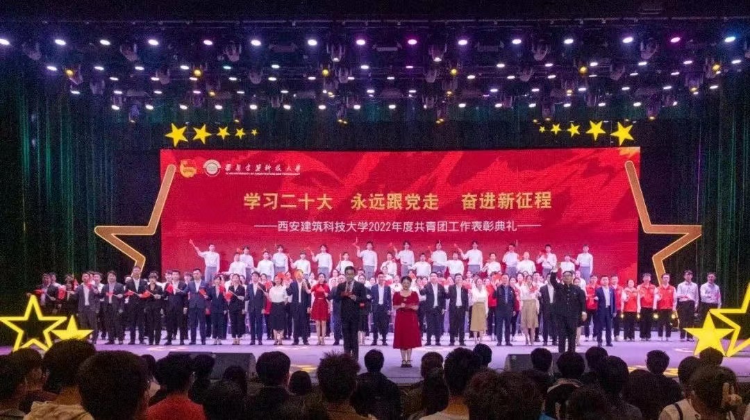 于4月27日在紫阁大礼堂隆重举行“学习二十大、永远跟党走、奋进新征程”2022年度共青团工作表彰典礼。