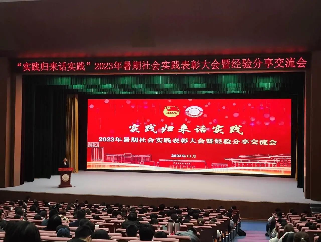 在紫阁大礼堂隆重举行2023学年暑期“三下乡”表彰暨经验分享大会。