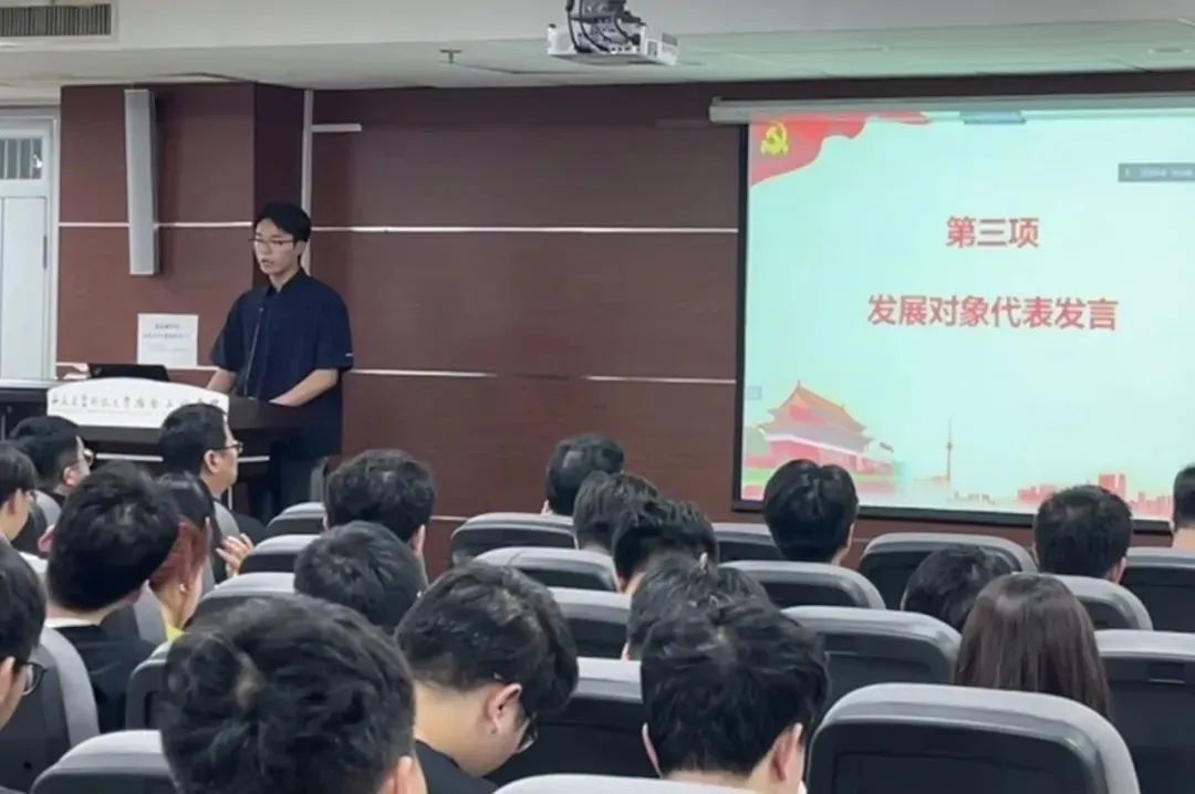 发展对象代表2023级研究生邱洪也在发言中表示作为发展对象将努力提高自己的思想政治觉悟和理论水平,将积极参加实践活动,把所学知识运用到实际工作中,充分发挥党员的先锋模范作用,会以党员的标准严格要求自己,自觉践行社会主义核心价值观,努力提升自己的道德修养,为党的事业贡献自己的力量。