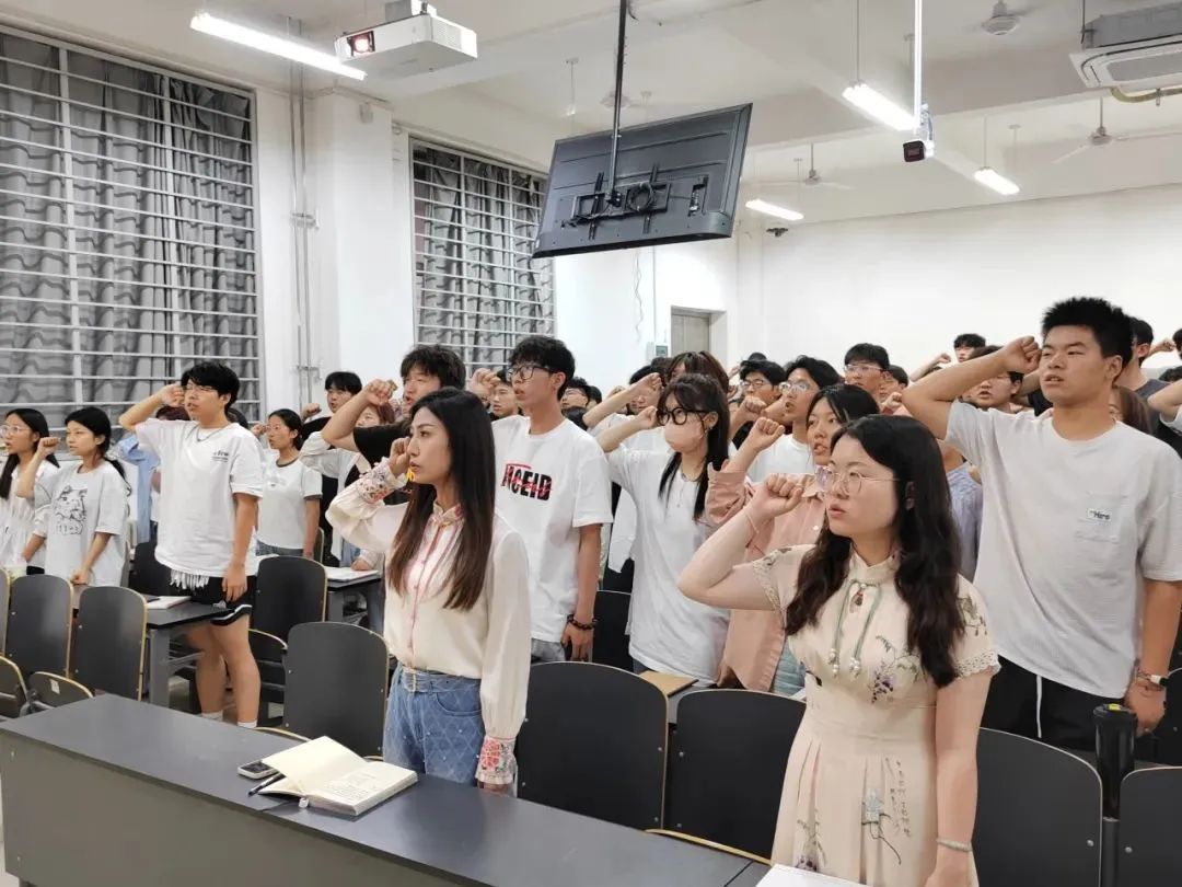 团委书记华如兵带领全体成员重温入团誓词。