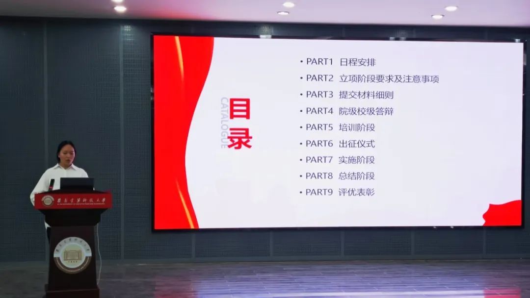 黄贺优从活动筹备到成果总结,依次对日程安排、立项申报、材料提交、院级校级答辩、实践培训、出征仪式、项目实施、总结复盘、评优表彰九大关键环节展开细致解读,明确各阶段具体要求与注意事项,帮助同学们清晰掌握活动流程与规范,为实践活动的顺利开展奠定坚实基础。