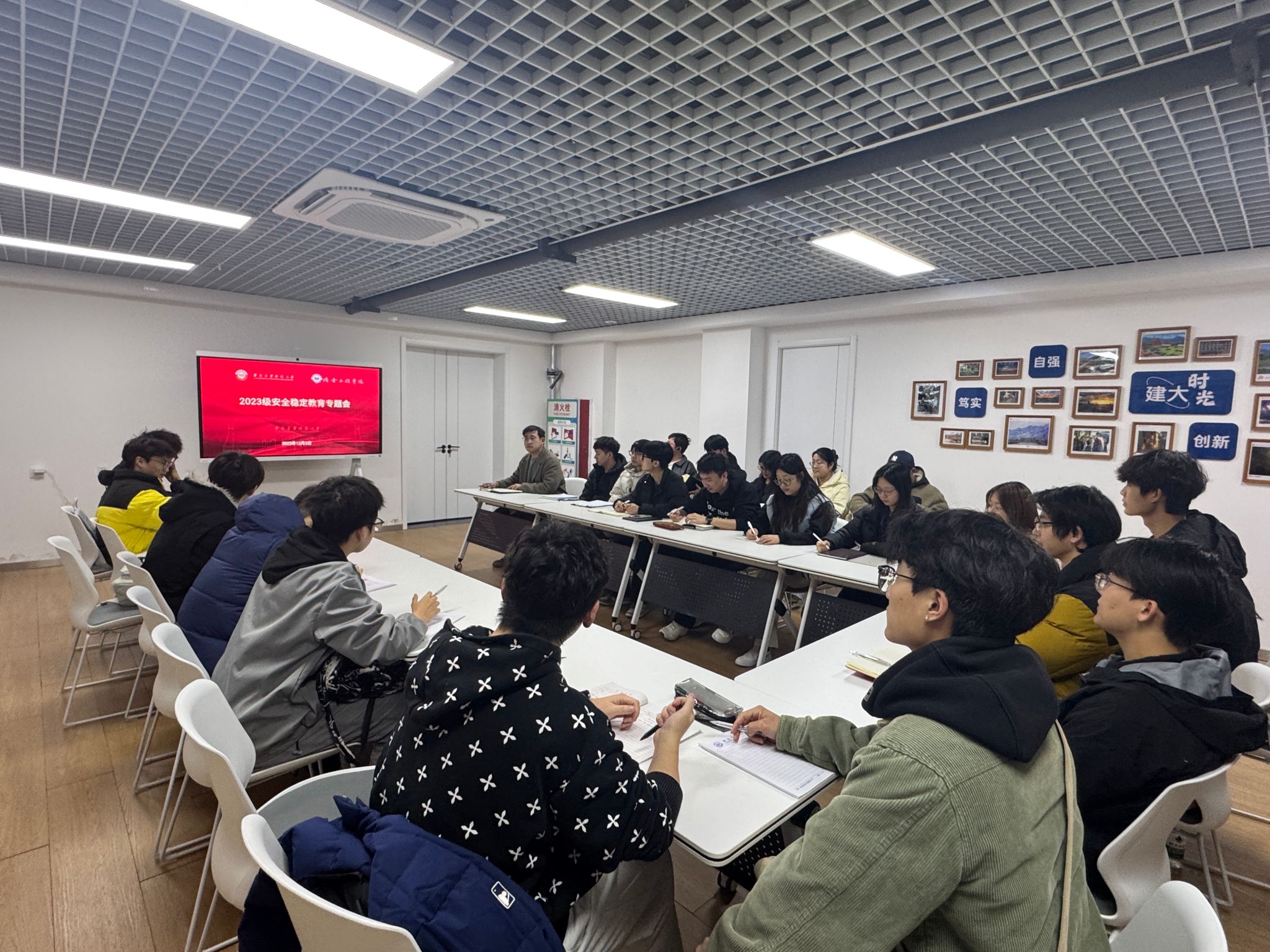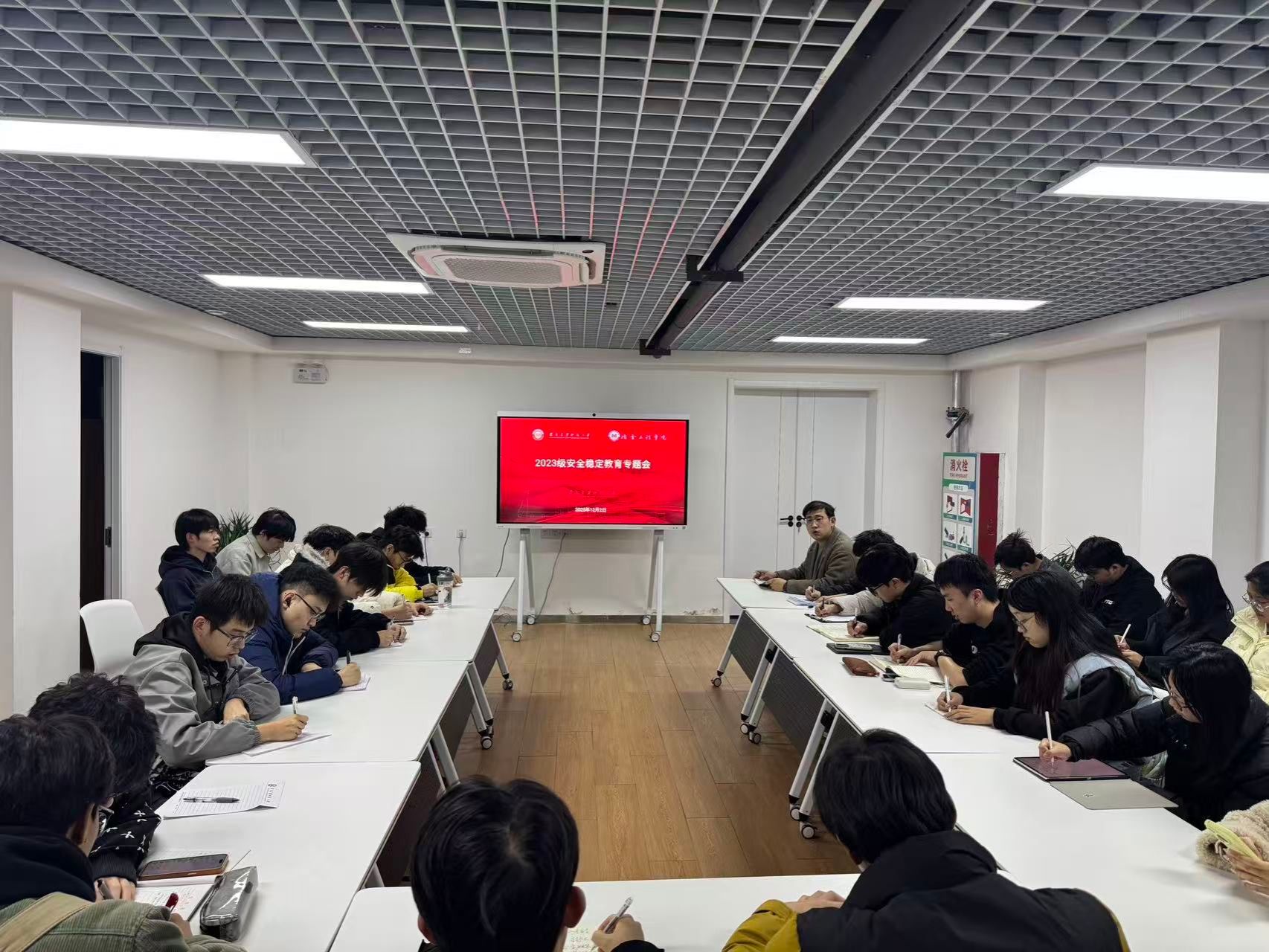 于2025年12月2日在一站式学生社区召开2023级本科生冬季安全教育专题会议。会议由辅导员岳家新主持,2023级全体班长团支书参与。