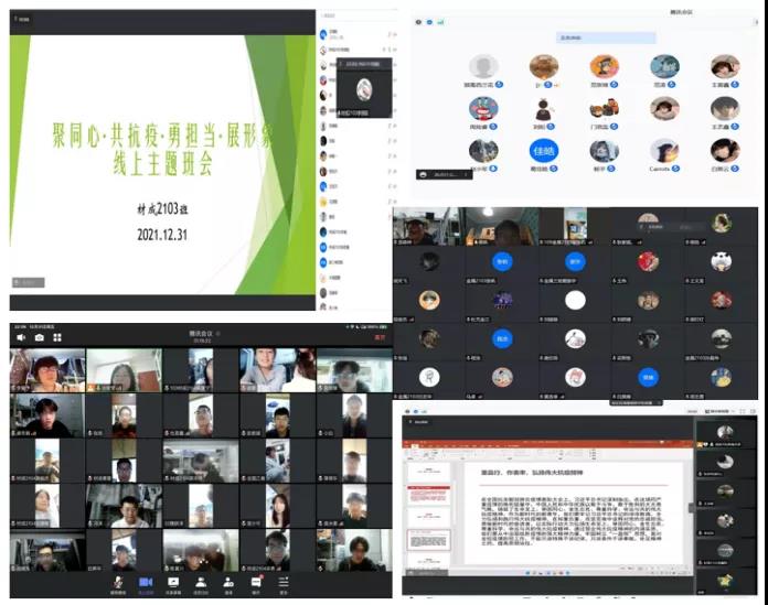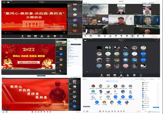 为坚决贯彻习近平总书记关于打赢疫情防控狙击战的重要指示精神和党中央、国务院的决策部署,落实教育部、陕西省、西安市有关疫情防控的精神要求和学校有关安排部署,进一步做好我院疫情防控工作,根据《关于组织召开“聚同心·共抗疫·勇担当·展形象”网络主题班会的通知》(西建大学工〔2021〕28号)文件精神和工作要求,2021年12月31日—2022年1月2日,全体辅导员、班主任通过网络视频会议方式组织我院51个行政班级、1374名本科生召开了“聚同心·共抗疫·勇担当·展形象”主题班会,教育引导我院学生弘扬伟大抗疫精神,坚决遵守学校疫情防控规定,在打赢疫情狙击战中坚定必胜信心,主动向所在宿舍楼临时党团组织报到,凝聚青春力量、强化责任担当,展现冶金学子良好形象。