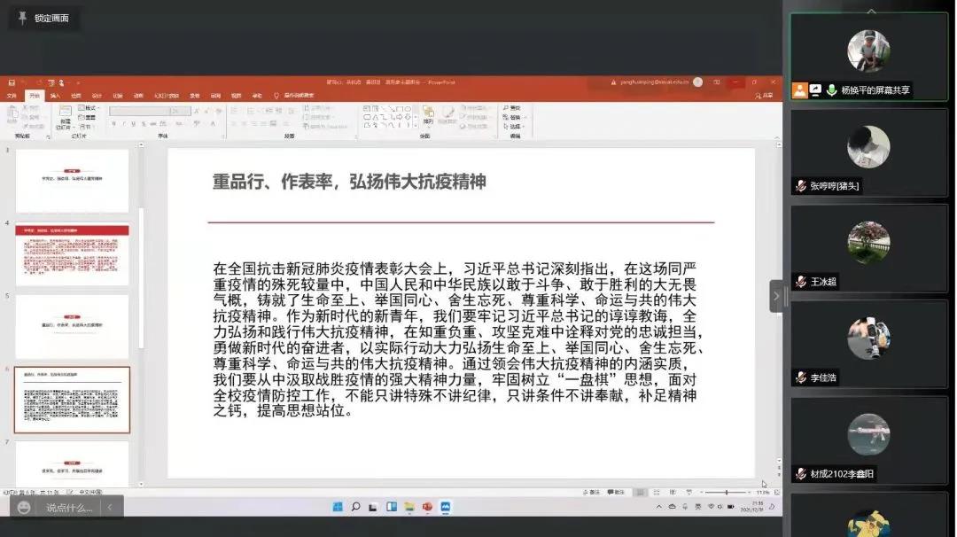 于2021年12月31号晚开展了“聚同心、共抗疫、勇担当、展形象”线上主题班会。此次主题班会由各班班主任主持召开,2021级各班全体同学参与。