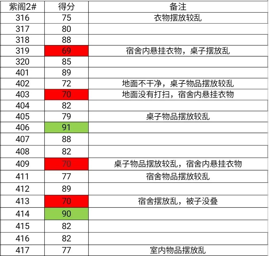 冶闻在线 | 91网站 第十五周宿舍卫生检查结果公示