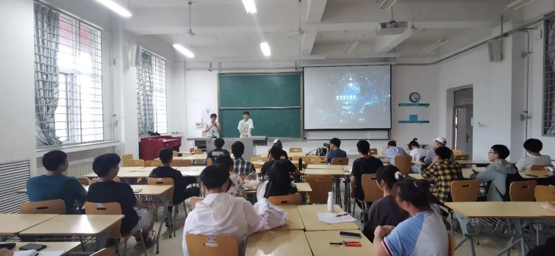 群星点缀着淡绿的天,像一朵朵的翠菊。活动开始,贾梓浚同学播放了他精心制作的星空摄影素材,为同学们展示了美丽的建大星空。惊艳的星空仿佛把同学们拉到了夏夜的草堂,像仲夏之梦一般让人流连忘返。