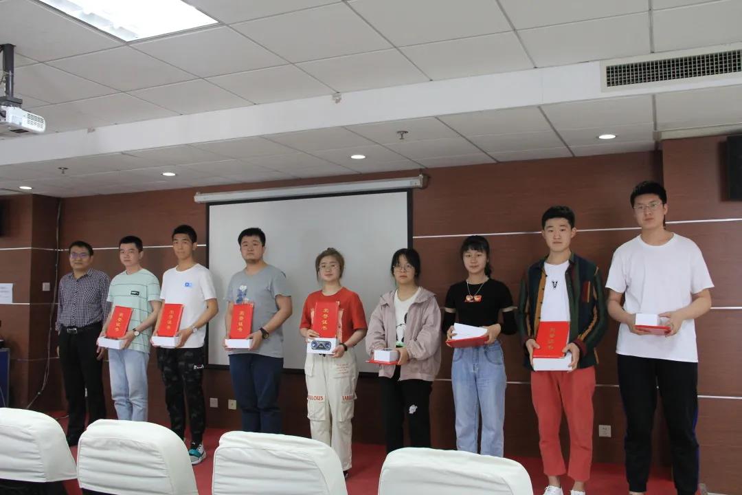 大会最后,王冠杰同学宣布了获得一二等奖同学的名单,各位领导老师为他们颁发了奖状和奖品。