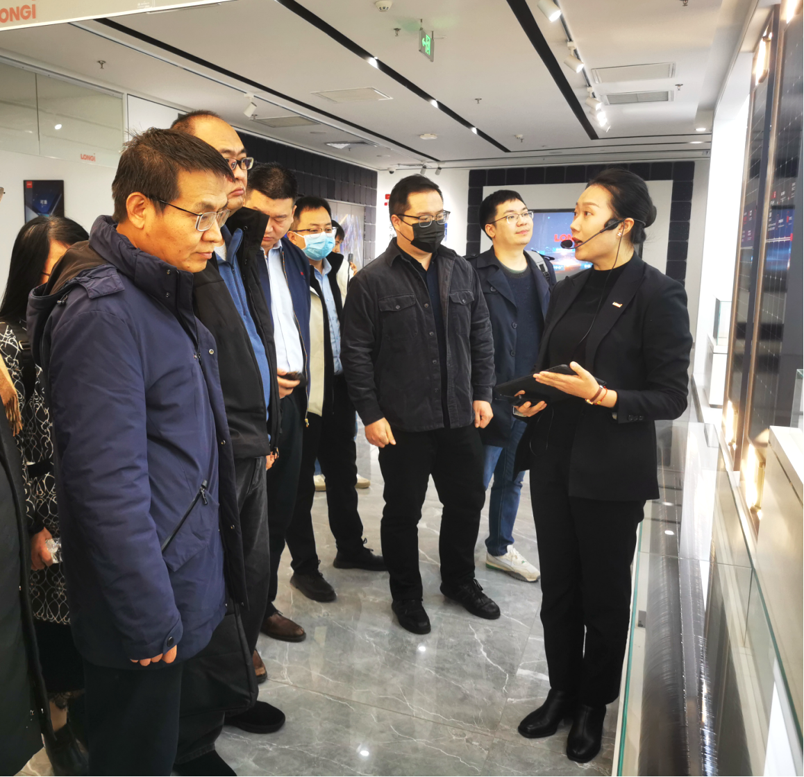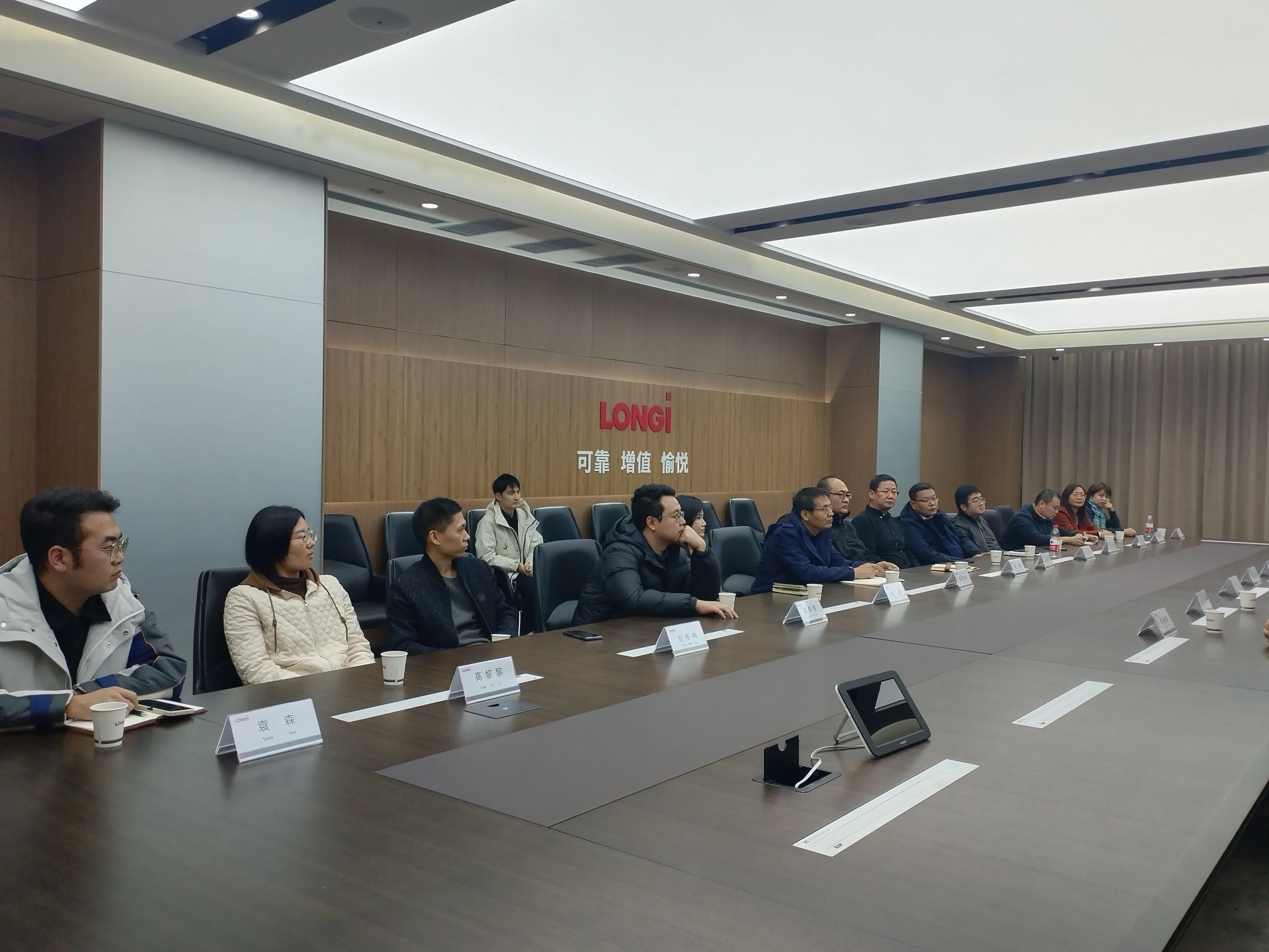 会前,学院一行参观了隆基乐叶光伏科技(西咸新区)有限公司企业展厅和太阳能光伏电池生产线,深入了解了企业发展历程、生产经营、业务范围等情况。