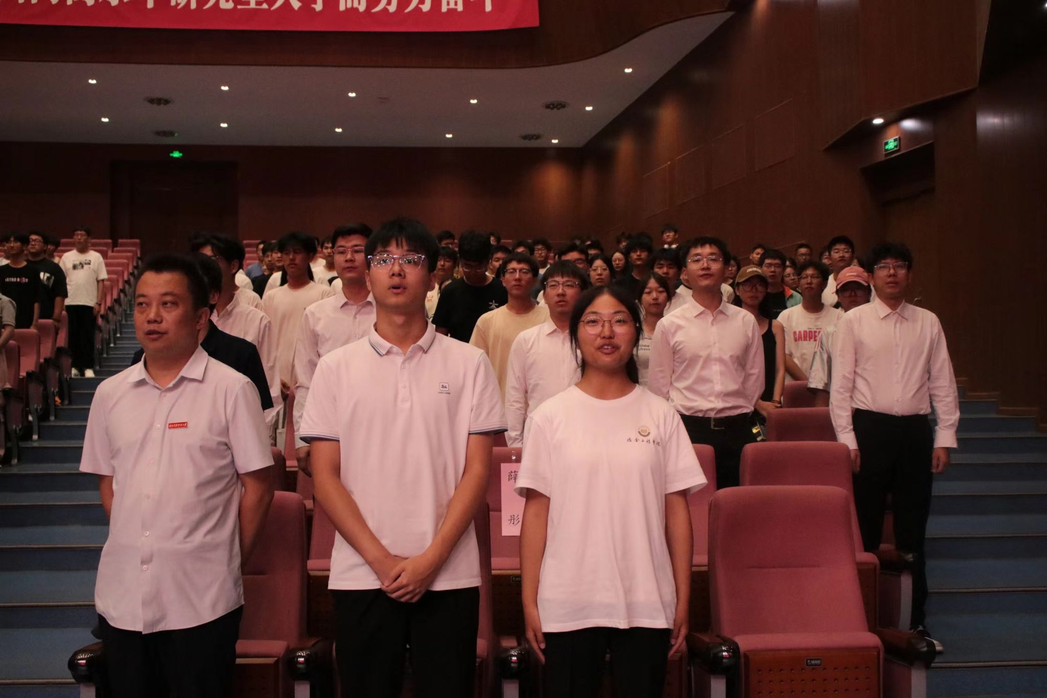 典礼最后,学院全体师生齐唱校歌《高举着民族复兴的伟大旗帜》。