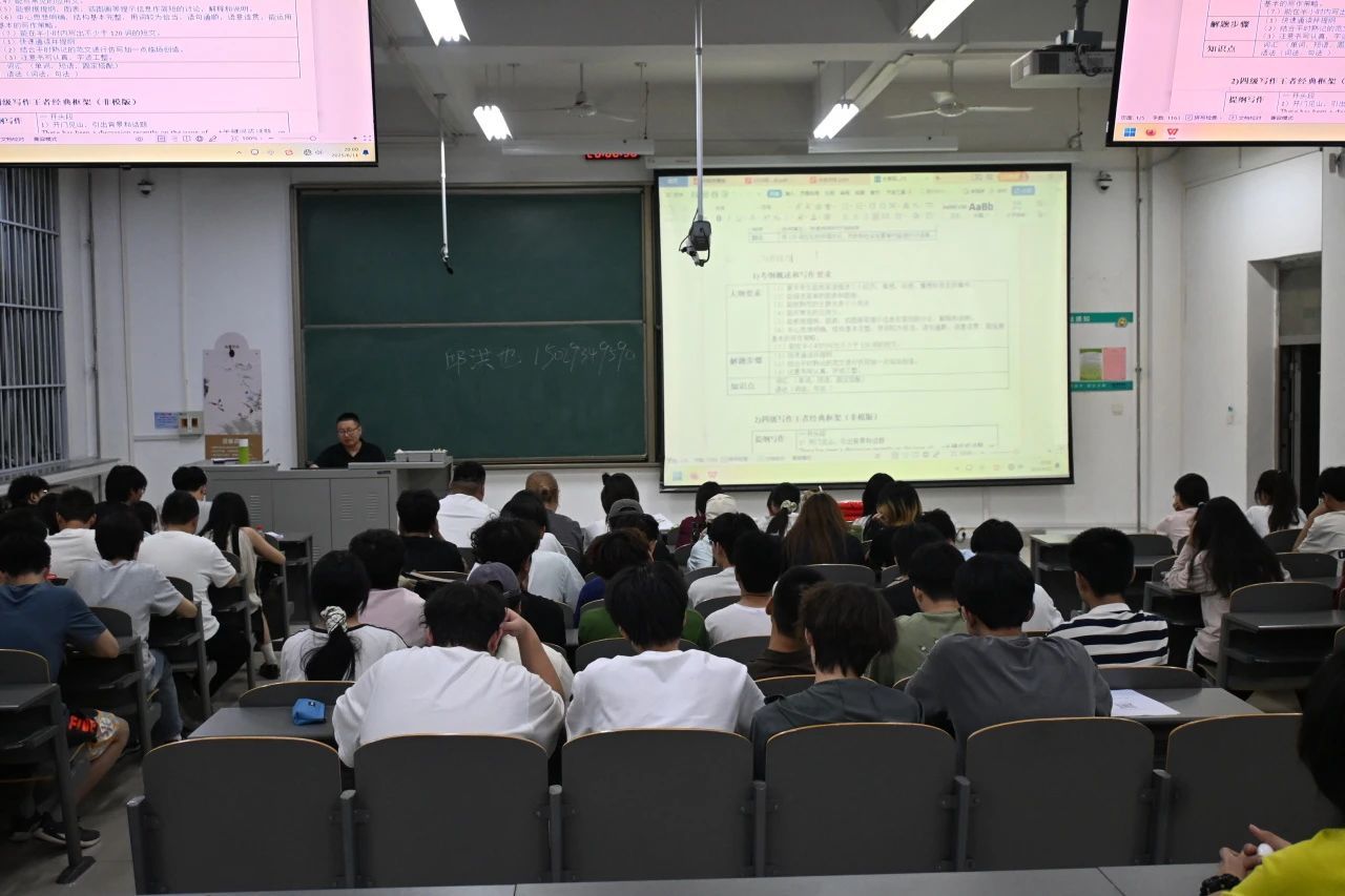 在四六级考试动员环节,老师从备考实战出发,为同学们详细讲解应试要点。针对试卷结构,梳理了听力、阅读、写作、翻译各模块的分值占比与命题特点,帮助大家明确复习重点;围绕写作技巧,分享了审题方法、逻辑架构和高分句型模板,提升写作实战能力;聚焦词汇替换,讲解同义词、高级表达的运用技巧,助力翻译与写作语言升级;最后结合真题训练、错题复盘、模拟冲刺等阶段,给出分阶段复习规划,引导同学们科学备考、高效冲刺。