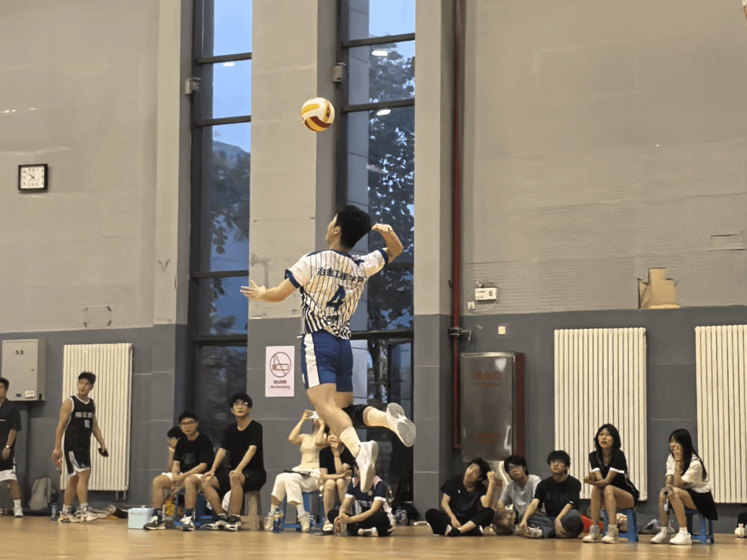 与土木学院展开激烈交锋。双方在攻防转换中呈现胶着战局,冶金男排凭借稳定的战术执行和默契的团队配合,始终保持场上主动权。面对对手的强势反扑,队员们从容应对、及时调整策略,在关键阶段把握机会扩大优势,最终以总比分3:1锁定胜局。终场哨响时,全场欢呼沸腾,球队成功弥补去年遗憾,为学院再添荣耀。