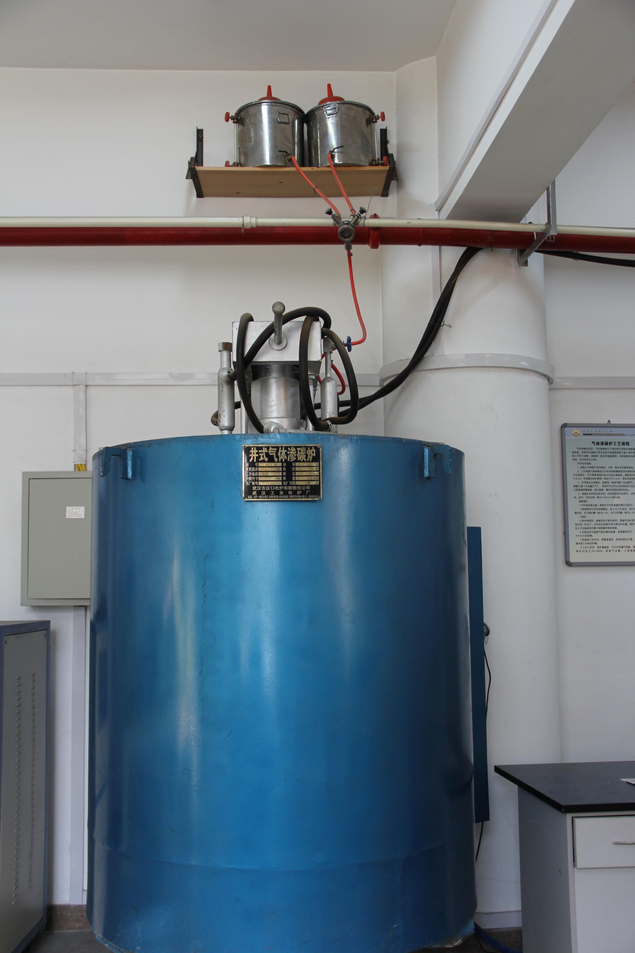 RQ3系列井式气体渗碳炉是节能型产品,炉衬用0.6超轻质耐火砖和保温砖及硅酸铝陶瓷纤维筑成复合式炉衬,空隙处填充保温隔热材料。加热元件绕制成螺旋形安置在炉衬搁丝砖上,用小钩定位以免炉丝滑出搁丝砖炉罐和装料筐均用耐热钢板焊接制成。被处理零件放在装料筐内。炉盖上的通风机,强制气体循环,使炉内温度和气氛均匀。水冷套采用活塞环式密封装置,较以前油密封结构具有受压高的特点。炉盖升降由电动蜗轮蜗杆减速装置驱动灵活可靠故障率低。升降轴设有二只限位开关,炉盖打开时,自动切断通风机电源,炉盖升起到位时,自动切断升降装置电源。炉盖上的滴量器,可供各种渗碳剂滴入炉内,用针形阀控制其流量。配置的冷却桶,供处理零件炉外冷却使用。炉盖上设有冷却滴量管、取样孔和排气孔。