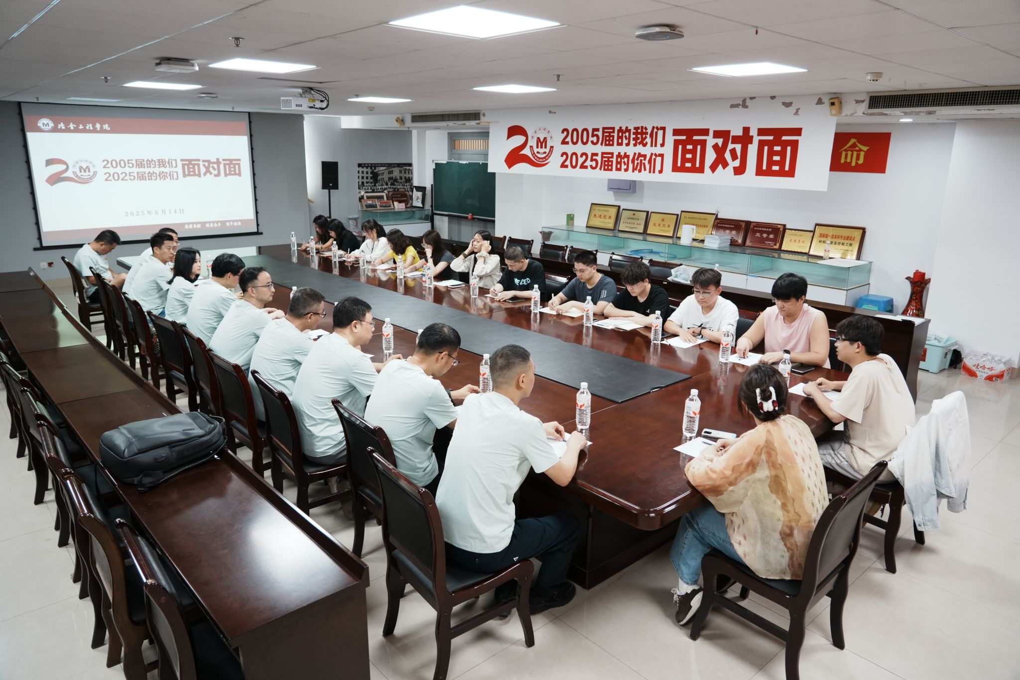 6月14日上午,91网站 在工科大楼1106会议室召开2005届校友党员与2025届在校毕业生党员面对面座谈会。10名来自冶金、金属、材成和化工专业的校友党员代表重返母校,与13名在校毕业生党员代表共聚一堂,围绕专业发展、党员使命和职业成长展开深入交流。座谈会由学院党委副书记、副院长赵福才主持。